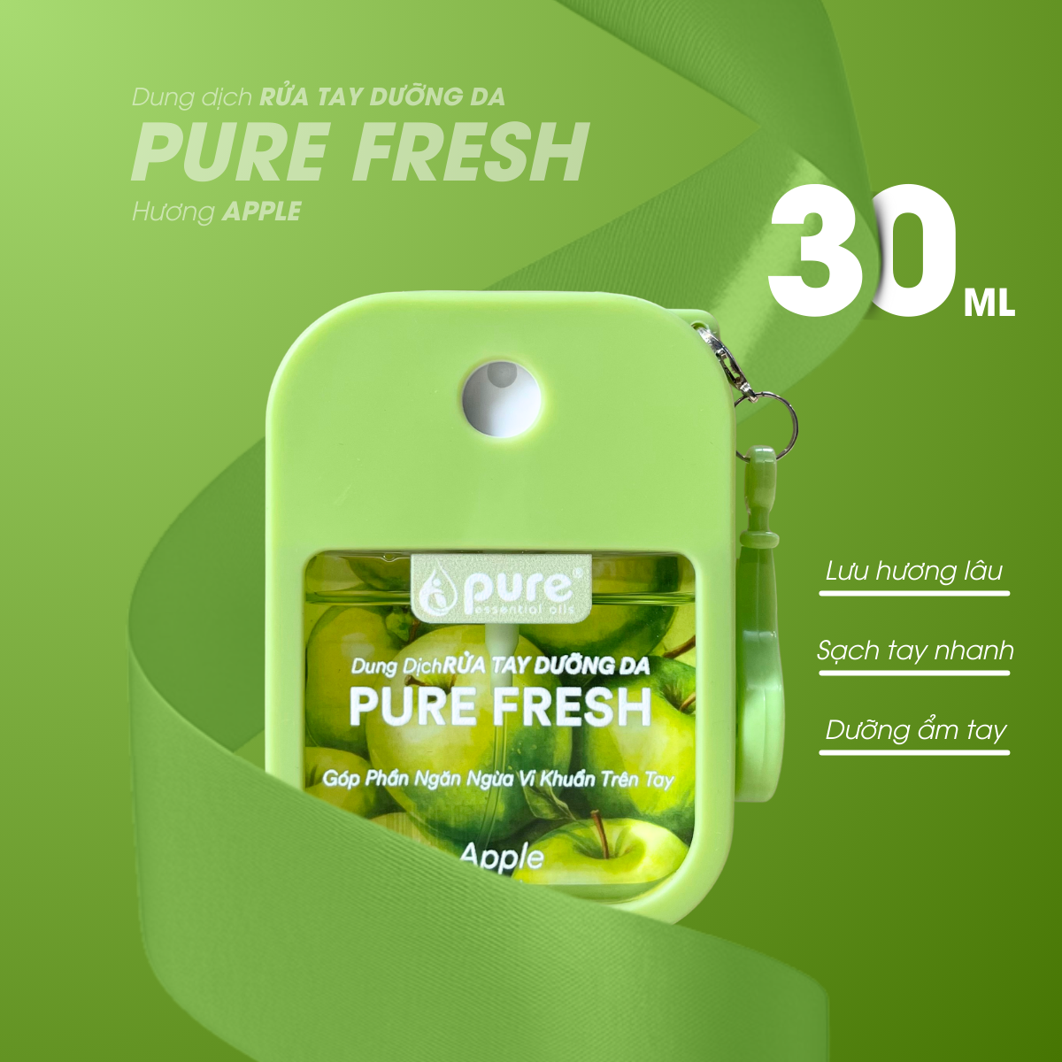 Điểm cộng lớn nhất của PURE Fresh chính là sự kết hợp 3 trong 1: Làm sạch – Kháng khuẩn – Dưỡng da. Thay vì sử dụng nồng độ cồn cao gây bong tróc da tay, sản phẩm được bổ sung tinh dầu thiên nhiên dịu nhẹ, giúp đôi tay luôn mềm mại sau mỗi lần sử dụng.