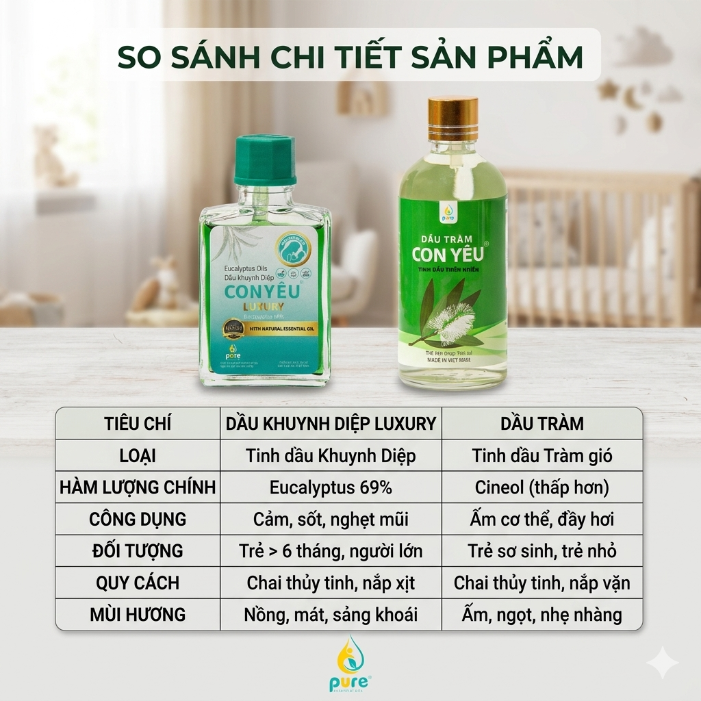 Việc nên chọn dầu tràm hay dầu khuynh diệp cho bé thực tế không phải là chọn cái nào "tốt hơn", mà là chọn cái nào "phù hợp hơn" với tình trạng của bé.